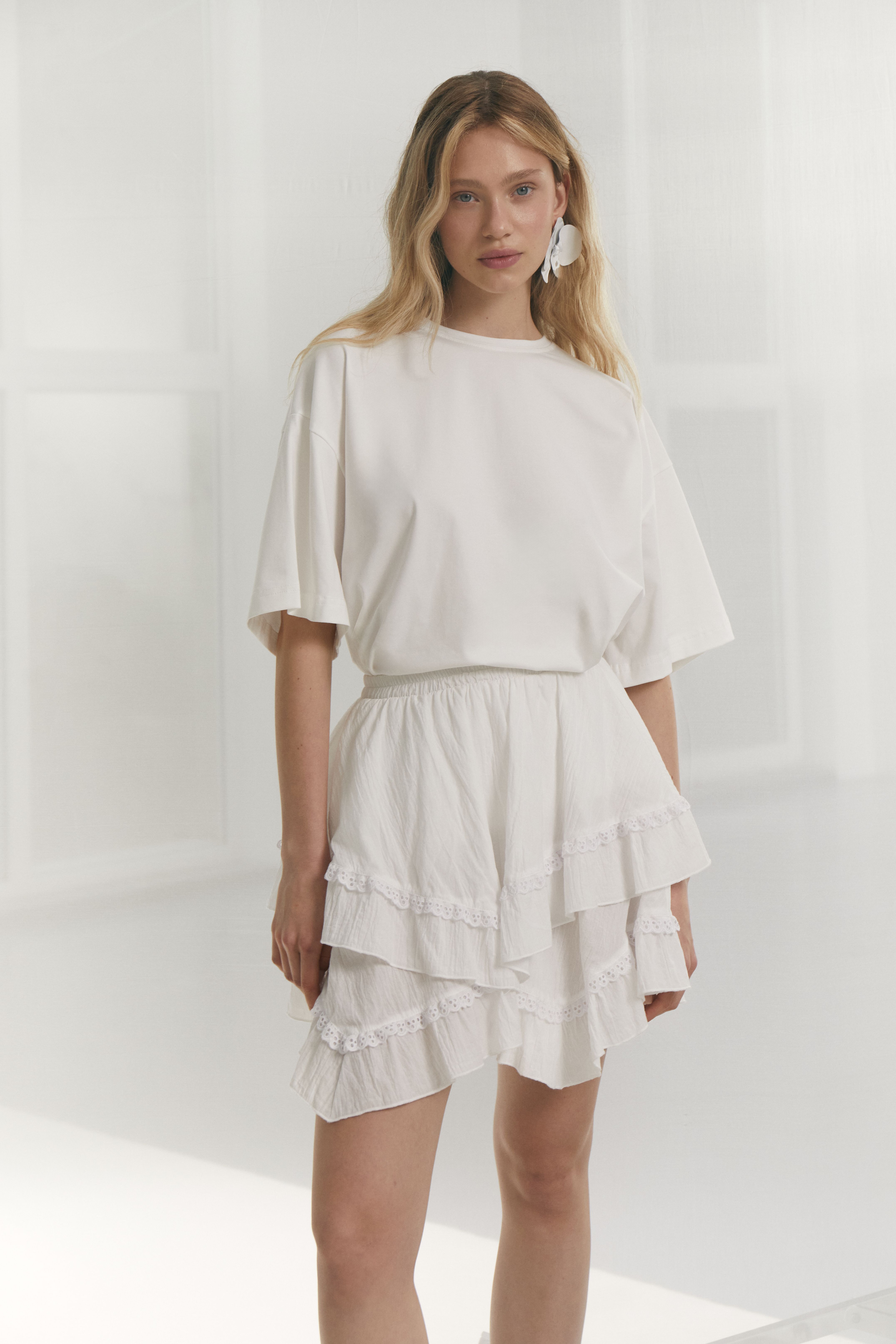 "Tulip". This is a type of straight skirt. If we talk about features, then during sewing, the upper part of the rectangle is made wider. This is how folds appear. Visually, it resembles an inverted tulip.